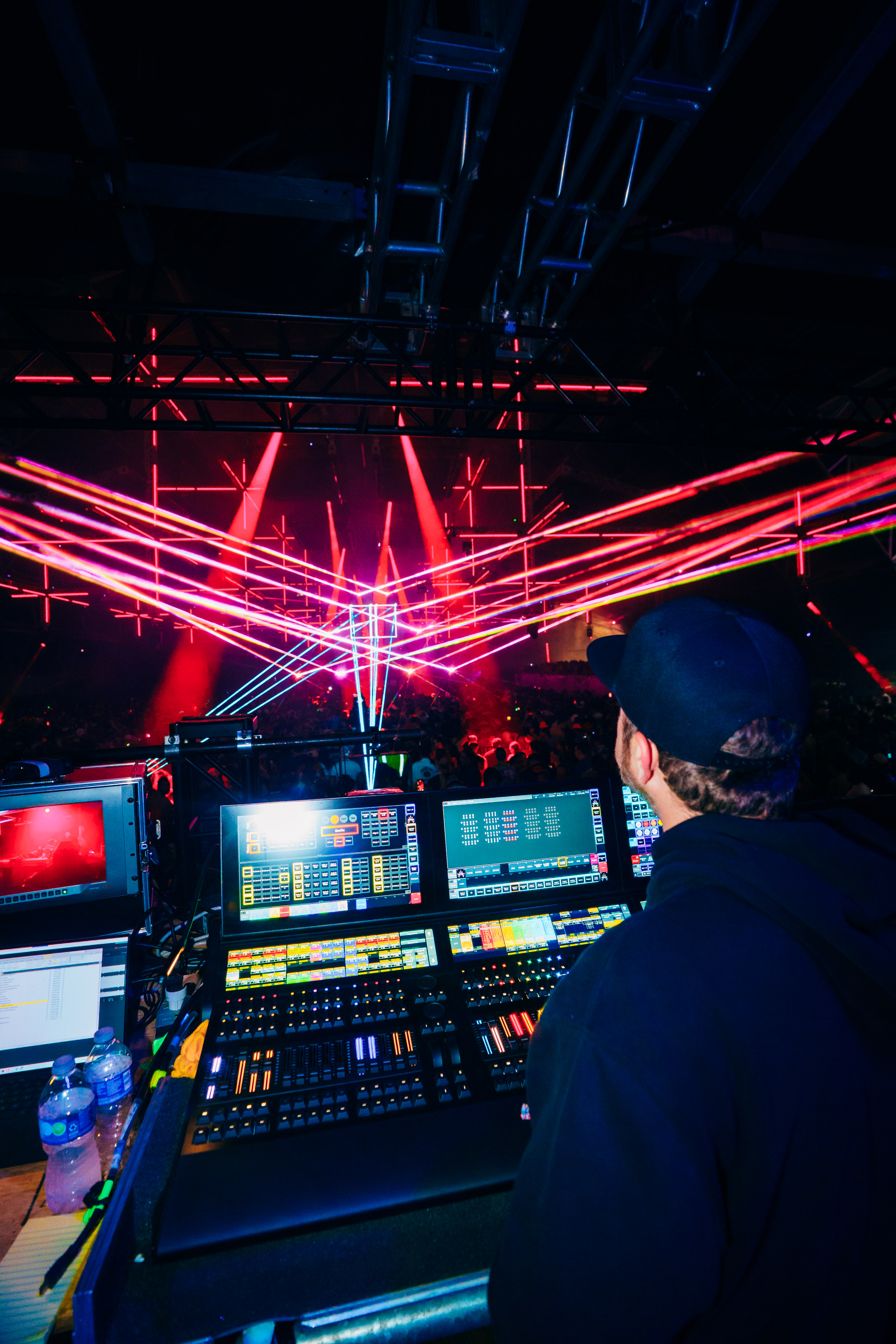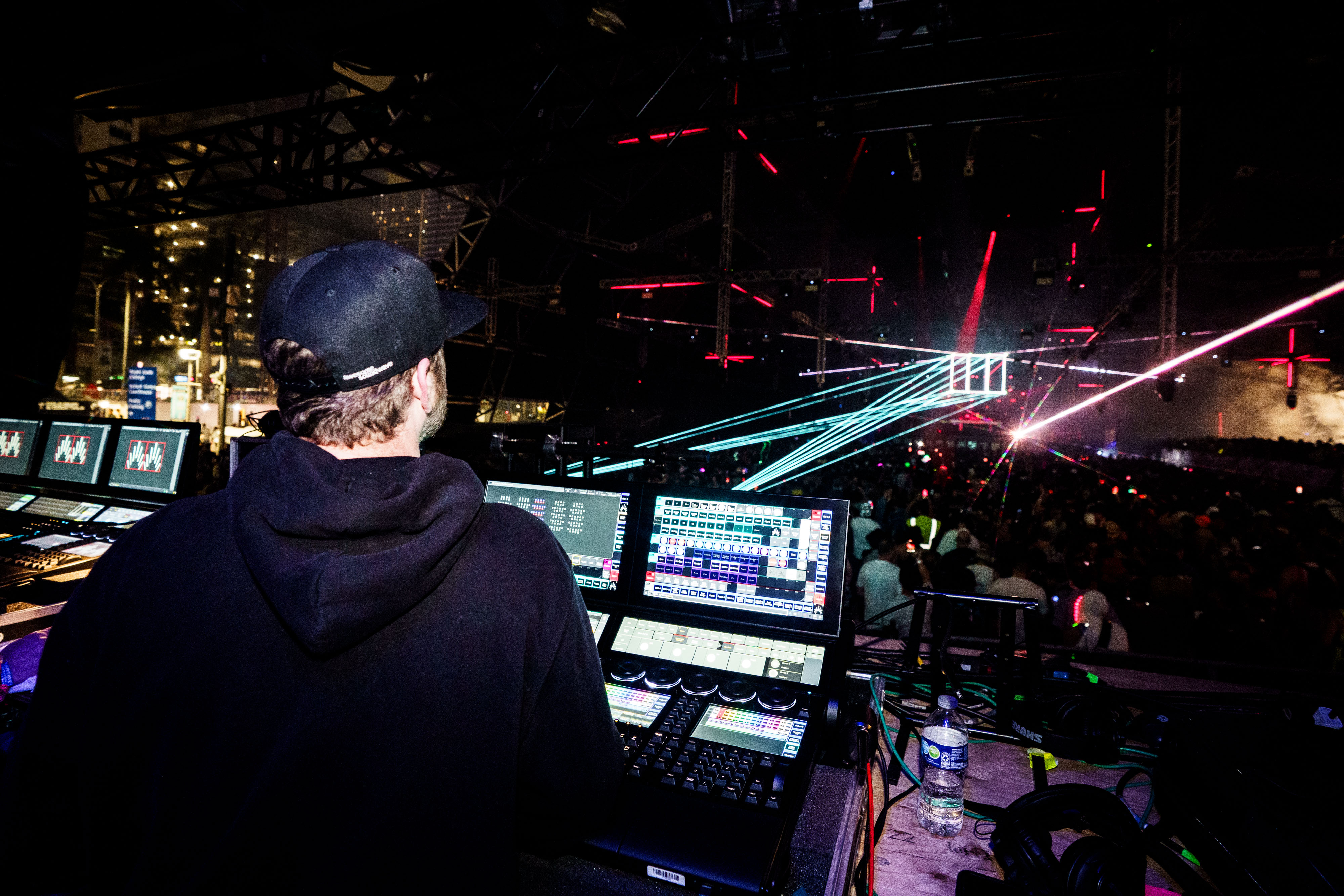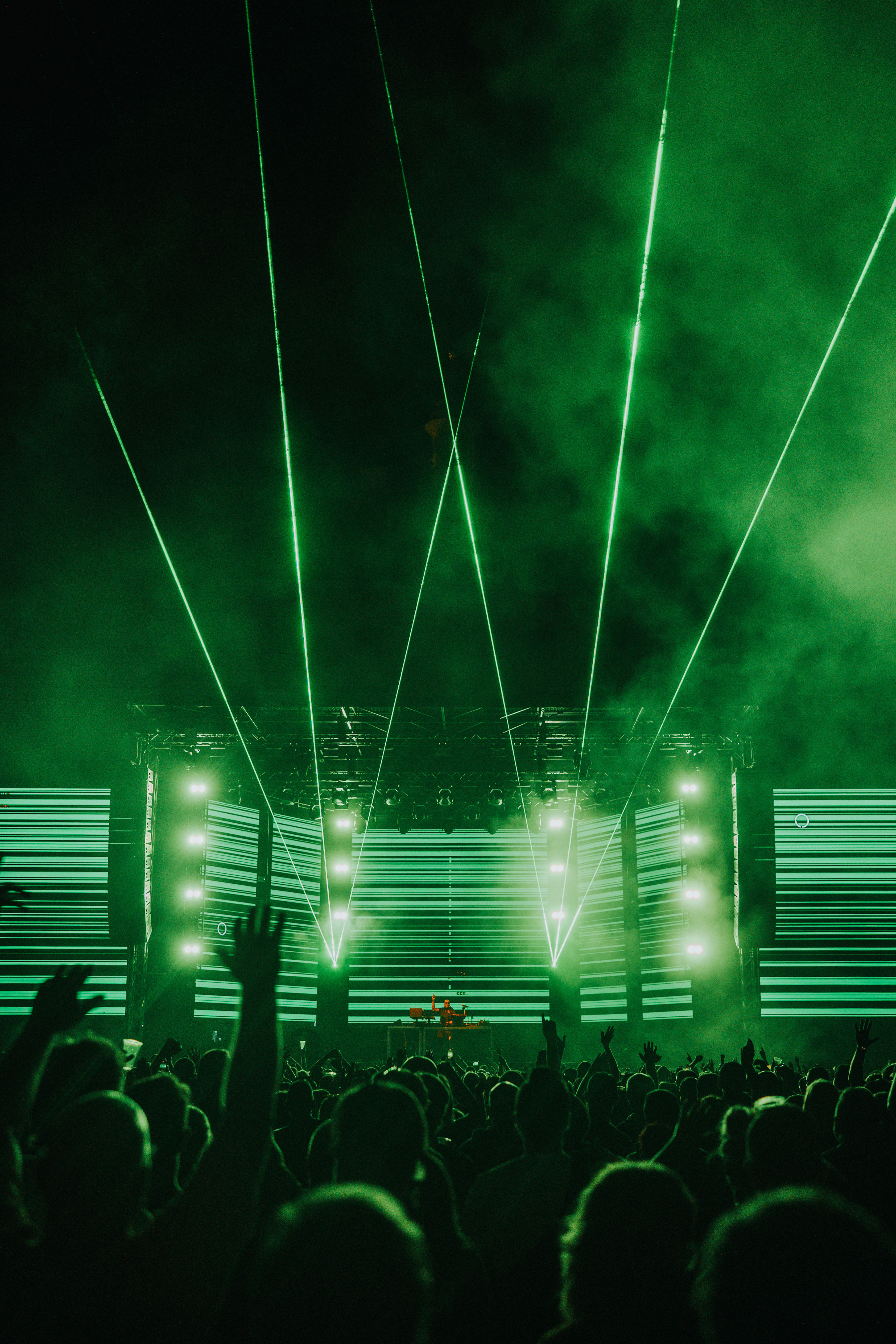For the Carl Cox Evolution tour, we developed a system to run real time visuals in sync with lasers and lights. The goal was to align every element of the show even though Carl performs a live set. This meant we had to process his musical data in real time to ensure our content stayed perfectly aligned with his performance at any given moment. We also implemented laser mapping to precisely coordinate the laser movements with the visuals on the screens. To allow the show to be performed worldwide at various venues like the Ultra Music Festival, we designed the system and content to be easily adaptable to different stage setups. Our focus was on creating a stable technical foundation where the music and visuals function as one cohesive unit throughout the tour.